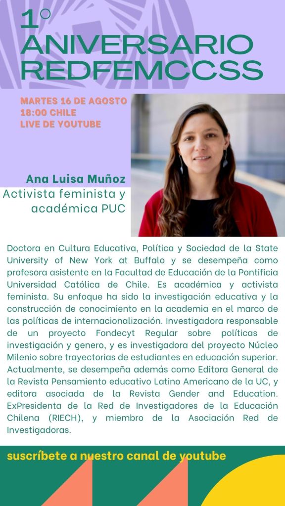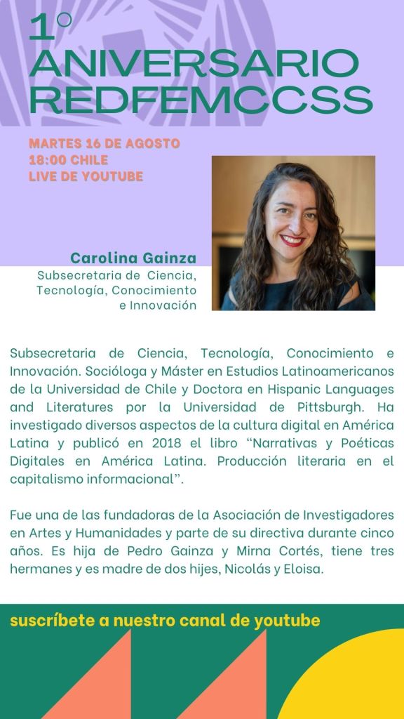 Presentamos lo que hemos hecho durante este primer año, y lanzamos oficialmente nuestros libros digitales de Relatos Anónimos. Además contamos con las presentaciones de la activista feminista y académica, Ana Luisa Muñoz, y de la Subsecretaria de Ciencia, Carolina Gaínza, quienes generosamente compartieron sus experiencias y reflexiones sobre cómo imaginar y practicar feminismos en las ciencias sociales.